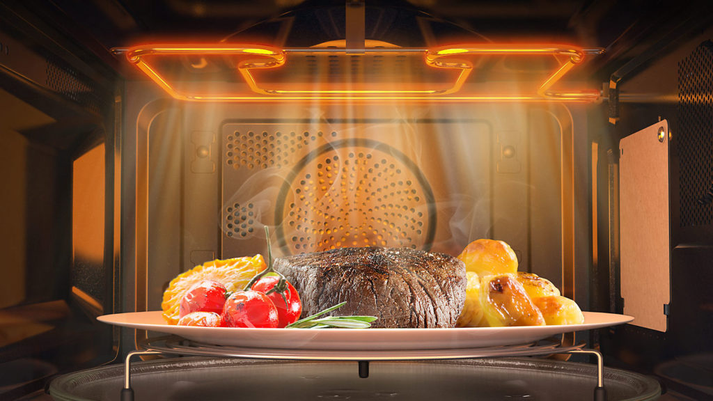 Many manufacturers cite the 3D baking feature that their microwave ovens offer. Some ovens have a triple heating system. It consists of a combination of a quartz grill, which causes food to heat up faster, with a frying and hot air function. Using this combination gives even heating and maintains the ideal flavor of the food.