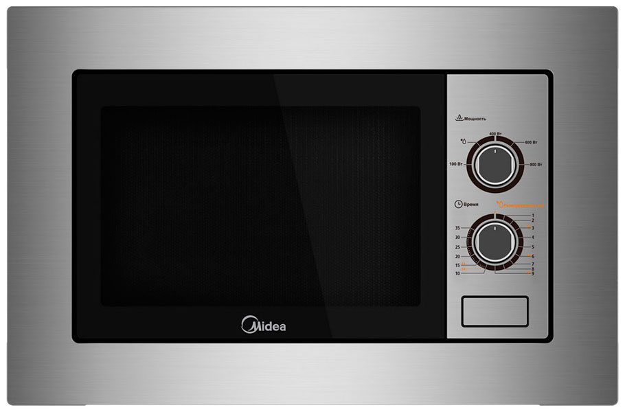 Excellent built-in microwave oven with stainless steel inner chamber, push-button rotary tact switches and user-friendly display. The silvery color of this model gives it restraint and minimalism.