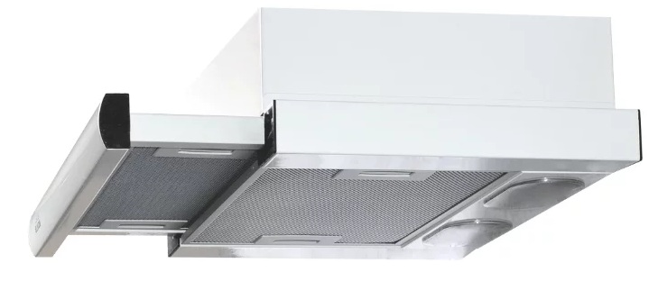 Hood with mechanical, slide control, telescopic mechanism and halogen lighting, suitable for any kitchen size. It is equipped with one powerful motor that operates in several modes. The frame is made of stainless steel, painted in a harmless paint. The model works in several modes, has different speeds, is mounted in a cabinet.
