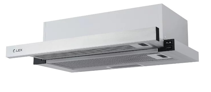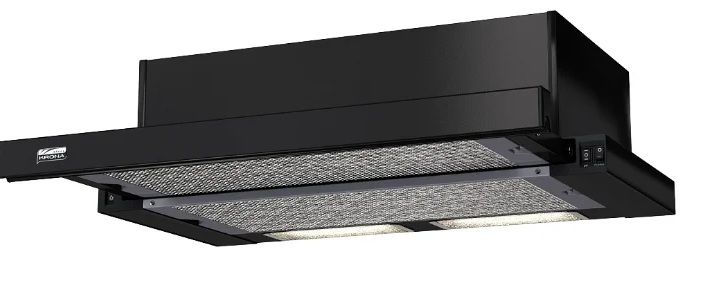 Technics with a grease filter, two operating modes (drainage, circulation), a mechanical control system (push-button) and a frame built into the cabinet. Thanks to the retractable suction panel, the design allows to increase the suction area above the work surface, thereby minimizing the degree of air pollution in the kitchen.