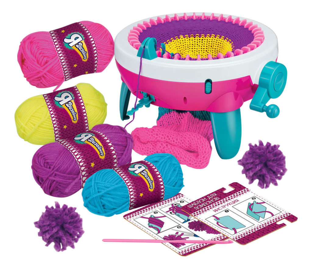 Prym MAXI from the oldest manufacturer from Germany is a high-quality round-shaped hand knitting machine with 44 hooks on the upper surface. It also provides a handle that rotates all of its movable elements. The design of the device also includes a thread tension mechanism and a plastic handle for fixing it during operation. 40 hooks work in the production of straight blades, and all 44 hooks in round knitting. The model has a high anti-noise effect, which allows you to use it even at night. The only drawback can be called the lack of the ability to add and subtract loops, since the original purpose of Prym MAXI was to knit scarves and sleeves. But despite this, the model can perfectly cope with the manufacture of blankets, ponchos, sweaters and other similar products. Behind the scenes, the presented unit is called a knitting mill.