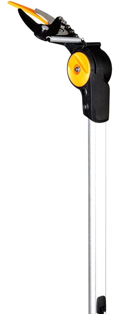 An inexpensive device attracts, first of all, by its price. The length is fixed and is 161 cm. Thus, you can work with branches that are located at a height of 3.5 m. However, the thickness of the cut elements should not exceed 3.2 cm. The cutting head is adjusted within 230 °. Recommended for use by homeowners and summer residents. It is used in the treatment of shrubs, fruit trees and hedges. It should be noted the light weight of the structure, which will be 1260 g. Also included are sharp blades and aluminum handles. The ratchet mechanism is powerful enough to allow delimbing up to 3.5 cm in diameter. If you have to deal with a large volume of work, then the attachment of the swivel head can fail. The top of the handle can wedge.