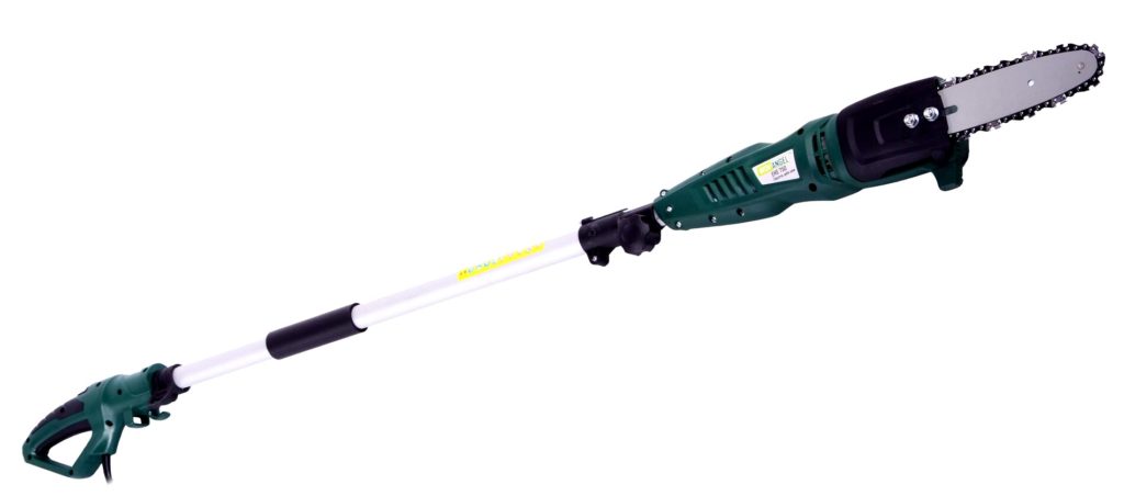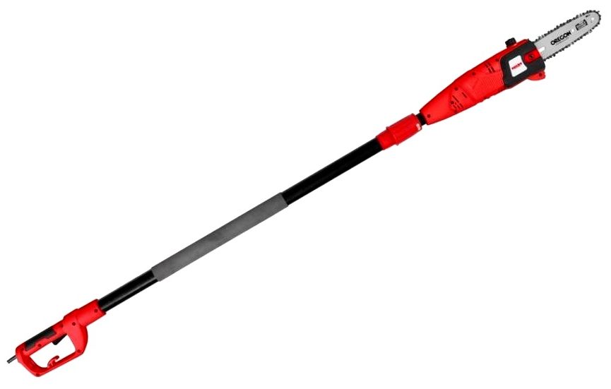 Electrical device from an English manufacturer. It is based on the use of an electric motor that runs on the network. Unit power - 800 W. Sufficiently productive and fast pole cutter. High-strength aluminum is used for the manufacture of the rod. Layout is carried out from 2 to 2.5 m. The head is adjustable at any angle. The fixation is solid enough. Convenient width - 25 cm. Wrenches are used to tension the chain. The weight of the device is 3800 g. A shoulder strap is provided for greater ease of use. The power button is located on the handle. In the same area there is a rubber pad.