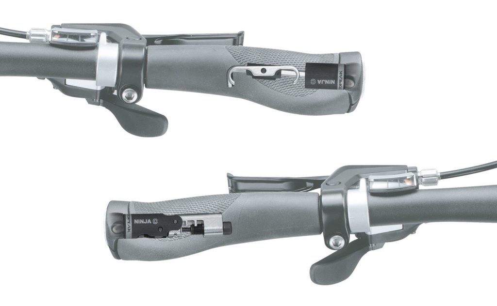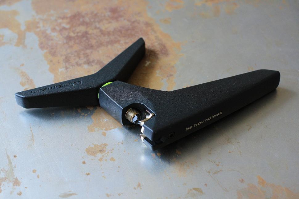 An unusual tool. The squeeze handles simultaneously act as steering caps (suitable for bars with a minimum diameter of 16.5 mm, a maximum diameter of 20 mm). Suitable for replacing and repairing consumables on high-speed bikes (Campagnolo - 11). Plus pin compartment, hook and 4mm Allen key.