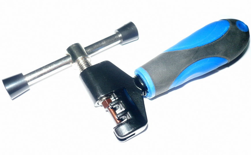 Professional, versatile tool. Ergonomic non-slip handles, customizable design. Also suitable for Shimano (11 speeds). Includes small pliers designed to separate the links. Will help out when replacing a worn transmission and when the chain breaks. YC-396 has earned good reviews, including from experts - the tool is used even in workshops.