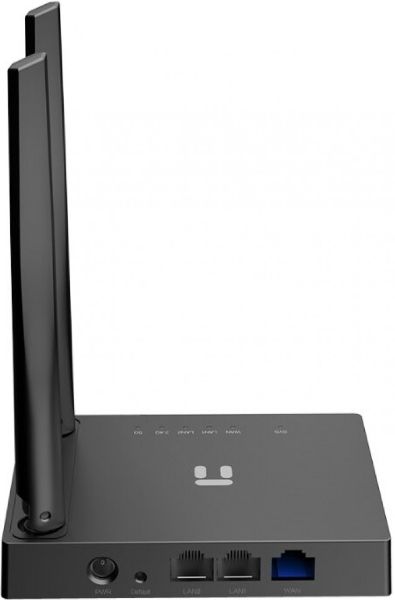 The router is made in a small case made of plastic materials in black colors. The outer surfaces are matte, so the model stands out from the competition with its resistance to dirt and fingerprints. The router is developed on the basis of the RTL8197FN processor, the clock frequency of which is 600 MHz. 64 MB of RAM and 8 MB of flash memory are provided on board. It functions in 2 frequency spectra: