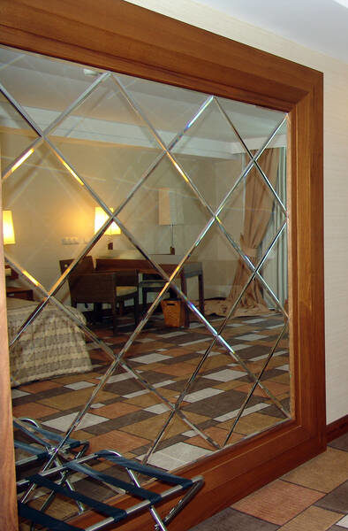 The finished mirror glass is 2-6 mm thick. Light transmission - 84-85%.