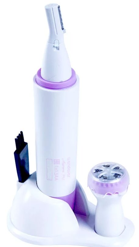 An easy-to-use, inexpensive universal device from a Chinese manufacturer. Suitable for shaping eyebrows, and trimming hairs on the face and body. There are two attachments for these functions. The one that for the body has an unusual round shape. The instrument is on a stand, a brush is included for cleaning it after the procedures. Can only be used for dry shaving, the housing is plastic and moisture permeable. There is a light to help remove hair in hard-to-reach areas. This tool can also be used by men for trimming beards and mustaches. Average price: about 1000 rubles.