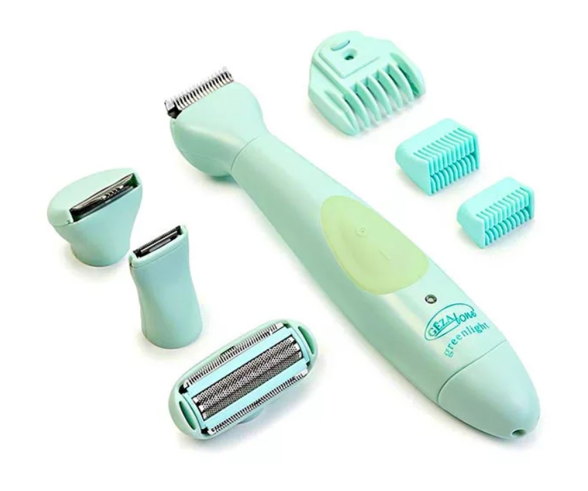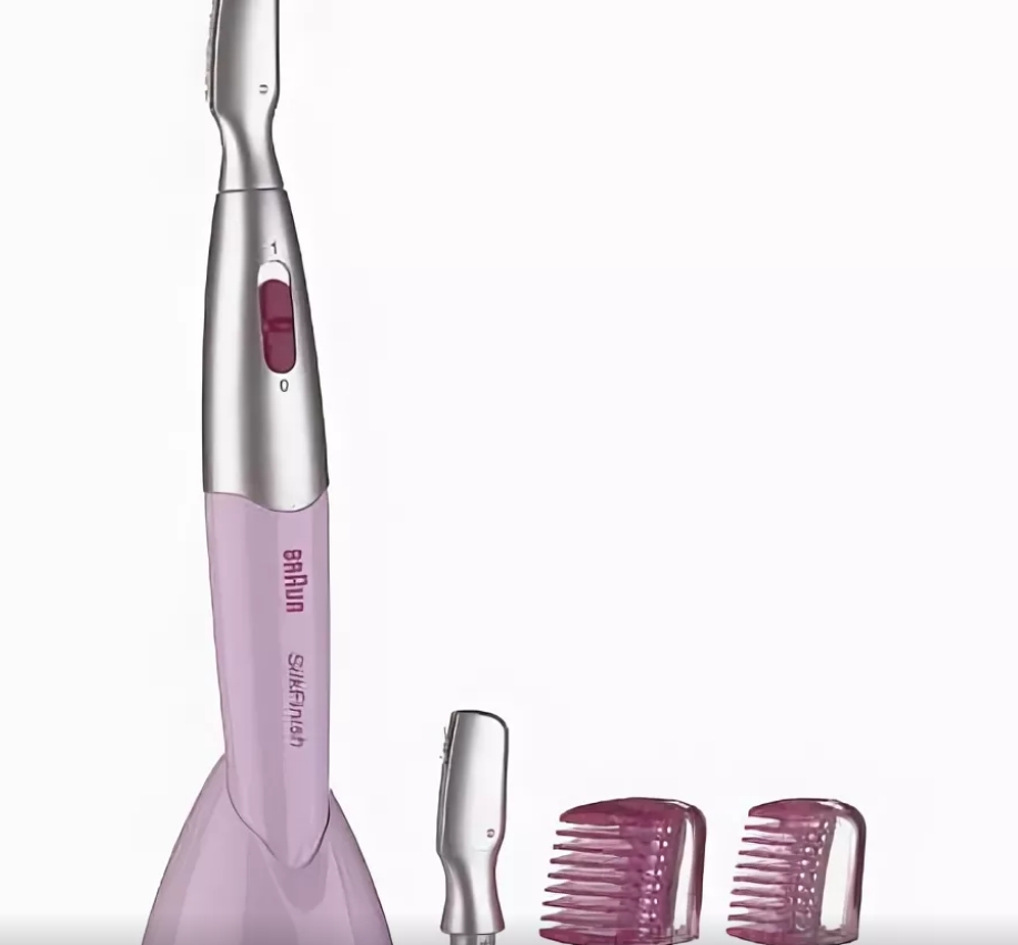 An easy-to-use and inexpensive product from a well-known Chinese brand. It has an interesting design, but there are only two nozzles - narrow and wide. Combs are included for the brows. Suitable for underarms and bikinis. For a woman who needs a reliable minimum at a modest price. It turns on by turning the knob - a kind of design approach, there are no buttons on the case at all. In the same turn, the case opens and you can change the blade or battery. Only used on dry skin without gels or shaving foam. The attachments are washable. Battery powered. The blades are sharp. The price is about 600 rubles.
