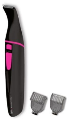 Famous American brand with production in China. Produces a wide range of women's trimmers. This is one of the most common models that are appreciated by buyers for their reliability and low price. The cost of the product is within 600 rubles. Small, battery operated, easy to travel. Has a water-repellent body and is used for dry and wet haircuts. Can be used when washing in shower and bath. The comb attachment adjusts the height - 6, 4, 2 mm. The kit includes stencils that can be used to decorate the bikini area. Battery operated.