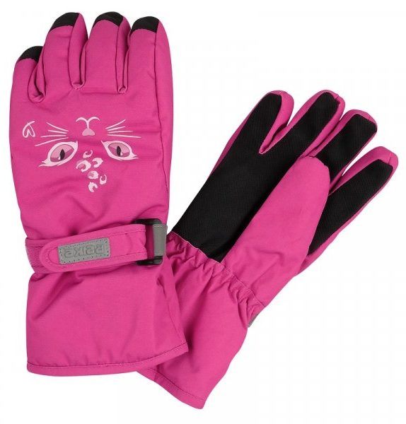 Huppa's Lina is attractive and stylish to look at. Outside material - 100% polyester, inside is soft fleece lining. The cuff is finished with an elastic band, from the outside there is a Velcro fastener, it is adjustable. Solid and multi-colored, these mittens are suitable for girls aged 2 - 6 years. The site features pink and purple shades.The material is waterproof, airtight and windproof. Reflective elements and a special elastic band are sewn on each pair. It is put on the hands above the wrist so as not to lose the mittens.