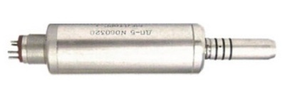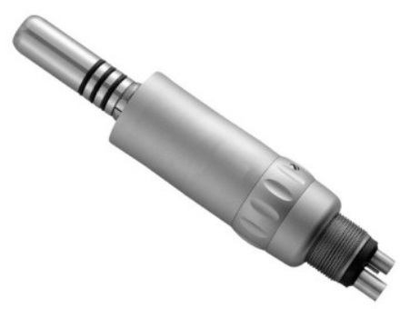 Air micromotor with external water supply with reversible movement function. The flexible connection of the hose to the maximum angle of rotation, during the work with the teeth, does not require pulling the "wire". There is a speed adjustment.
