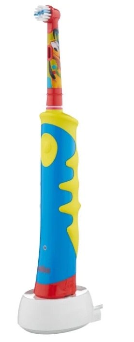 A device with a standard attachment for daily use with the function of synchronizing with a smartphone, timer, charge indication. Stored on a stand. There are stickers. The handle is adapted to the baby's palm, rubberized, does not slip in the hand during cleaning.