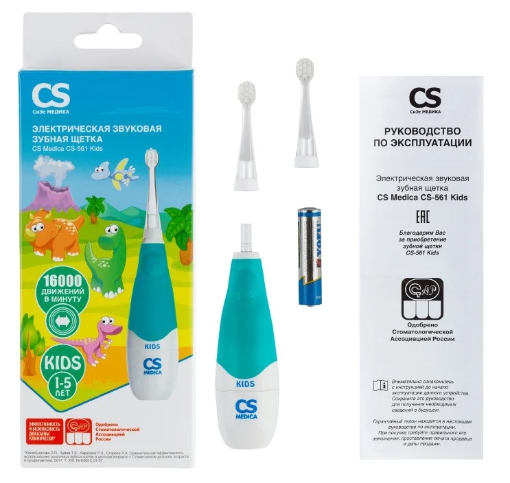 A device for independent use by a child, provides gentle care of teeth, does not deplete enamel, gets rid of food debris between dental spaces. For comfort, two speed modes have been developed (one is designed for getting used to).
