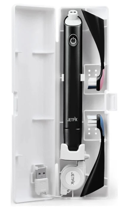 The elongated shape of the head allows you to clean hard-to-reach places. The modes are suitable for any person (varying degrees of intensity). For smokers and coffee drinkers, there is a whitening attachment. The body has a built-in USB slot for charging the device from a computer, network; indication of the battery and wear of the nozzle bristles; timer. The set includes a travel case, stand, cord, instruction manual.