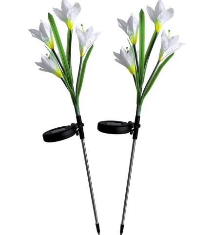 Buyers are attracted most of all by the beautiful design and low price. The quality of the body materials for the internal parts is flawless. LEDs emit white light. The luminaire can be easily installed on beds, flower beds or in the front garden. The case does not fade and is well protected from moisture and dust. In cloudy weather, the effect of such a product is not very much.