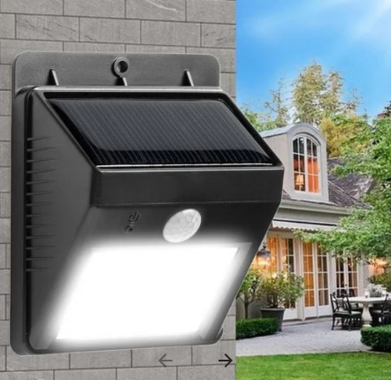 Inexpensive solar powered wall lamp with 4 LEDs. The design has a motion sensor, the cover is made of plastic. Good protection against dust and moisture (IP55) allows you to compete with other similar products. Power - 6 W. A good option for illuminating walls and approaches to buildings, gates, gates.