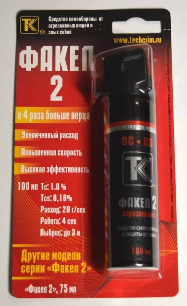 This self-defense gas device is very popular with users due to its simplicity and ergonomics. The main damaging substance in the can is the extract of hot pepper, which has the ability to burn the enemy. When it is sprayed, the aggressor begins to cough violently, tears profusely flow, and vision is lost. According to users, after using this cartridge for self-defense against an attack by a human or animal aggressor, the action of the hot pepper extract is quite effective. Average price: from 300 rubles.