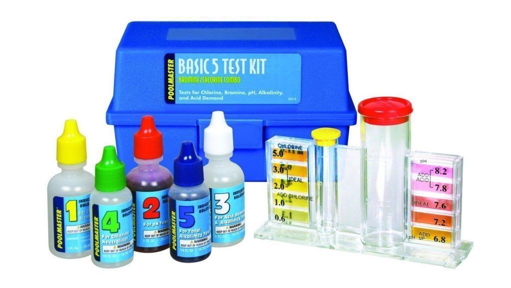 Best-in-class pool water testing kit. Allows you to comprehensively examine the water for the presence of substances harmful to the body. The tester is a set of vials with chemicals and reagents; the kit also includes a test tube, flask, instructions for use. The kit allows you to check the water for the content of chlorine, bromine, determine the pH level. Average cost - 1,071 rubles.