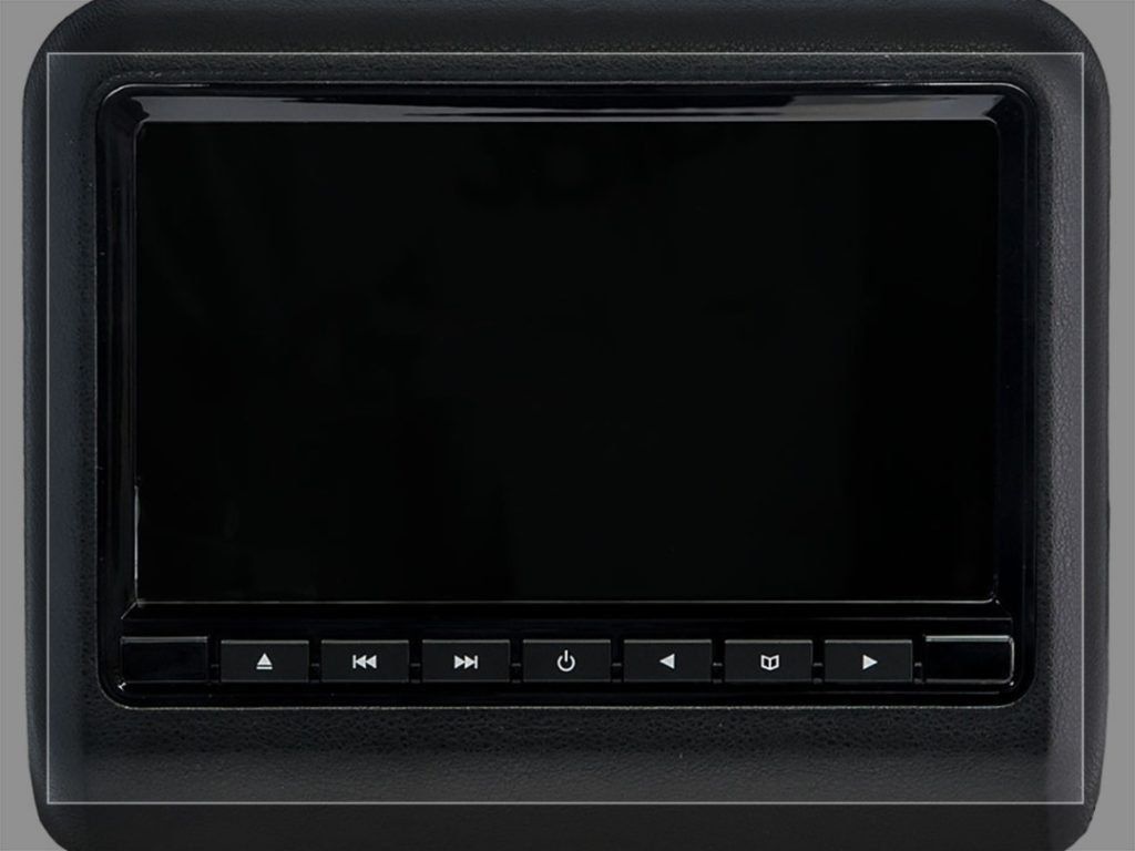 The leather-covered device, consisting of an LCD display, an MP3 player and adjustable legs, acts as a headrest for the interior of each car. The shell includes a Mini Jack (3.5 mm) for connecting a video and audio headset, and 2 more RCA slots, the connection to which is carried out by means of supports (10 mm). The system is controlled by a touch display, touch button panel or remote control.