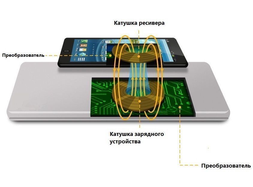 To create magnetic induction, it is necessary to press two aligned plates against each other. One of them is a source that connects to the smartphone's battery. In this mode, the plate in the phone acts as a receiver. This receiver is directly connected to the battery contacts, which fill the battery with electricity. This is the simplest way to explain the complex work of power transmission using the Qi standard method. Today, this technology is rapidly spreading in all possible public places. In the G7 countries there are already ATMs where you can pay in this way for travel, tickets, food, and so on.