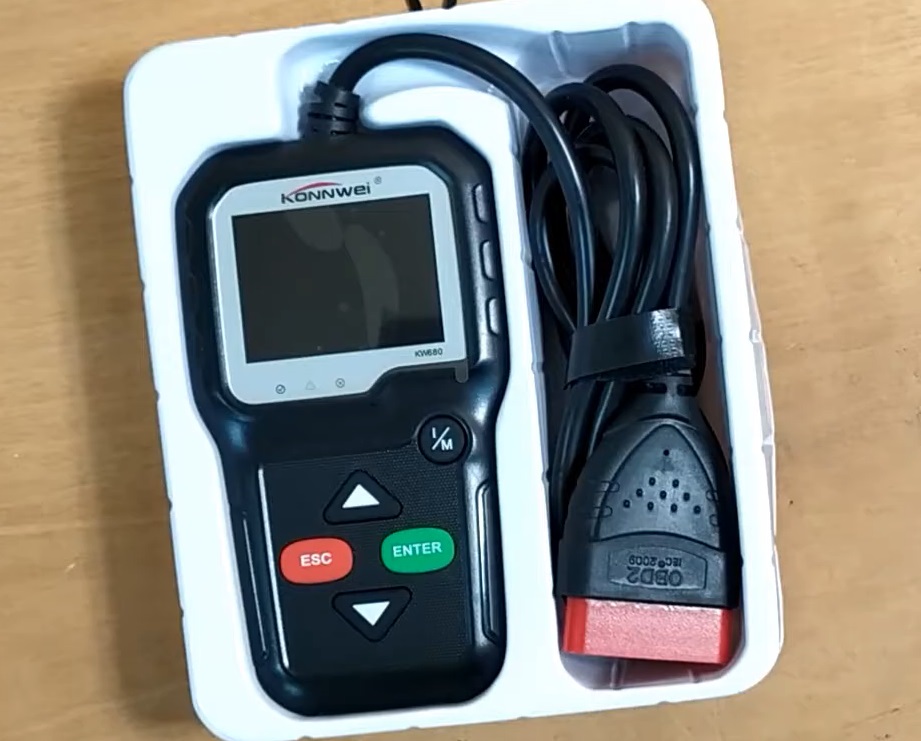 A small device with a cable, which is equipped on one side with an adapter for connecting to the OBDII connector of the car (available in all cars manufactured after 2004). The case is plastic, protected from moisture and dust. He is not afraid of dust, water, oil or dirt. The operating temperature range (-20- + 70 degrees) allows you to operate the device at any time of the year. The screen is 1.77 inches with a resolution of 160 by 128 dpi displays all indicators in real time.