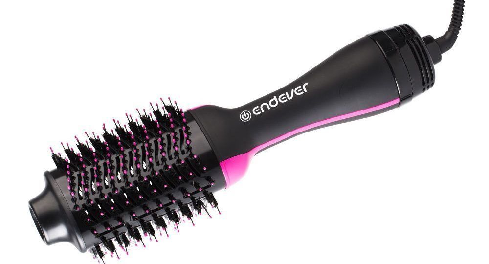 A styler with a comfortable handle, with which you can not only dry the strands, but make them lush and voluminous, curl into curls, align.Three secondary attachments provide gentle drying for any hairstyle. The rated intensity of the unit is 1000 watts, and the number of temperature rise modes is three. There is a loop for storage on the wall, but no brushing option. Average price: from 1450 rubles.