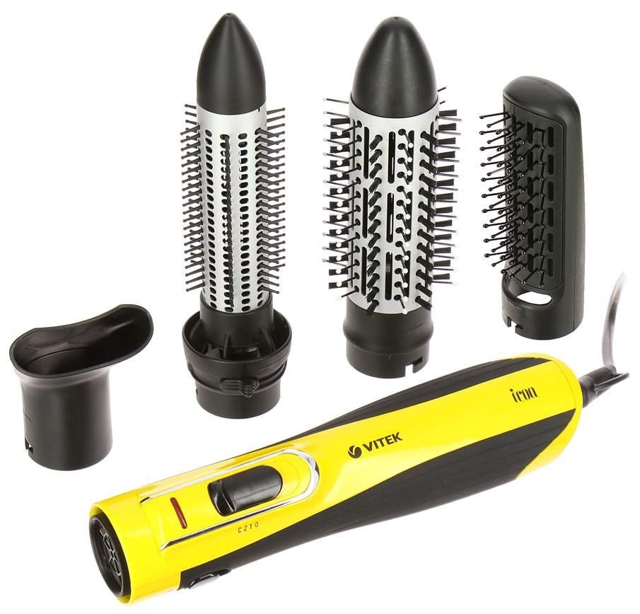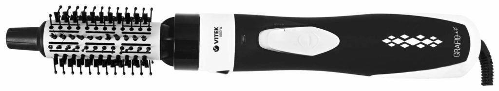 Convenient, quite functional unit. Equipped with two replaceable brushes of different diameters, power is 1200 W, 3 modes of work intensity. Perfect for both volumetric styling and curls of various diameters. Two rotating attachments and two modes of exposure to cold air allow you to create an unlimited number of styling on hair of various thicknesses and lengths. Average price: from 1400 rubles.