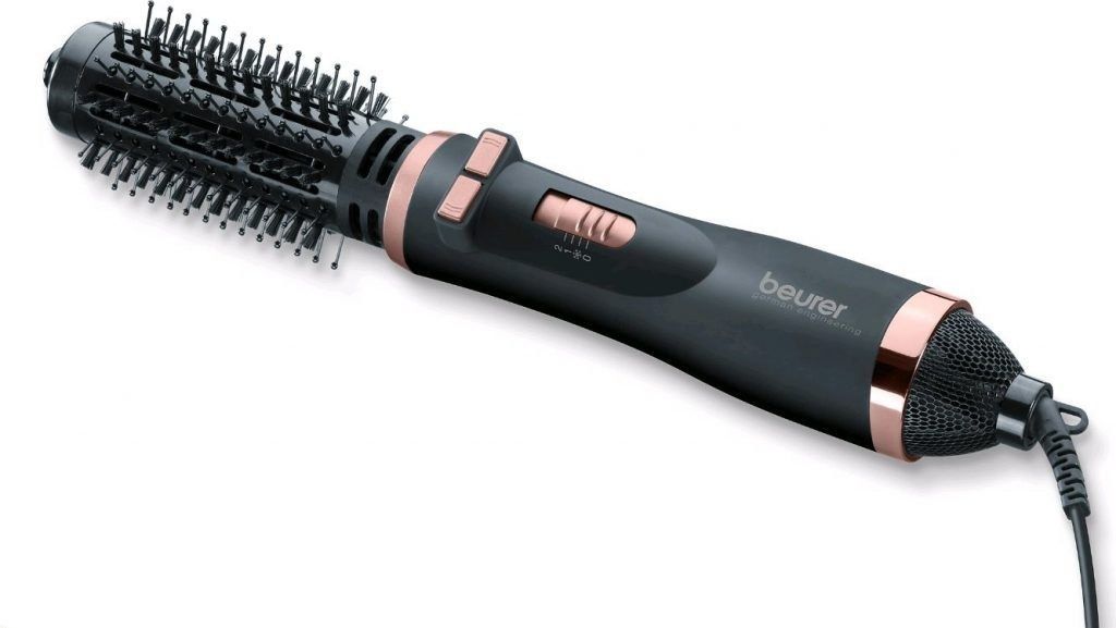 A unit for drying and styling hair with a keratin-ceramic coating of the attachments and an ionization function. Rotating thermal brushing will add volume and shine to any type of hair, and a steam generator with negative ions will avoid static discharge, improve the condition of the strands, and give the curls a shine and silkiness. The protective coating of the attachments will provide gentle hair care, and the cold air will fix the clutch for a long time without the use of any additional products. It features an ergonomic design and a comfortable handle with rubberized inserts. Average price: from 4900 rubles.