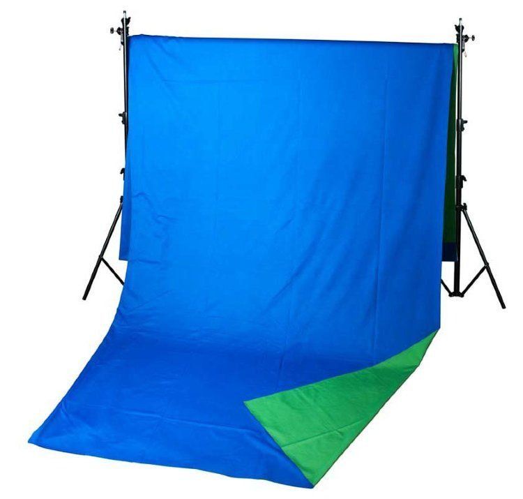 Double-sided fabric chroma key in blue and green colors. Suitable for video filming and photography. Size: length - 7 m; width - 2.4 m. average cost - 6740 rubles.