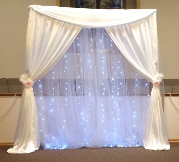 In the second case, the structure resembles an arch of the gate: a crossbar on 2 posts. Deployed using the control panel. Most often, this design is used for fabric backgrounds.