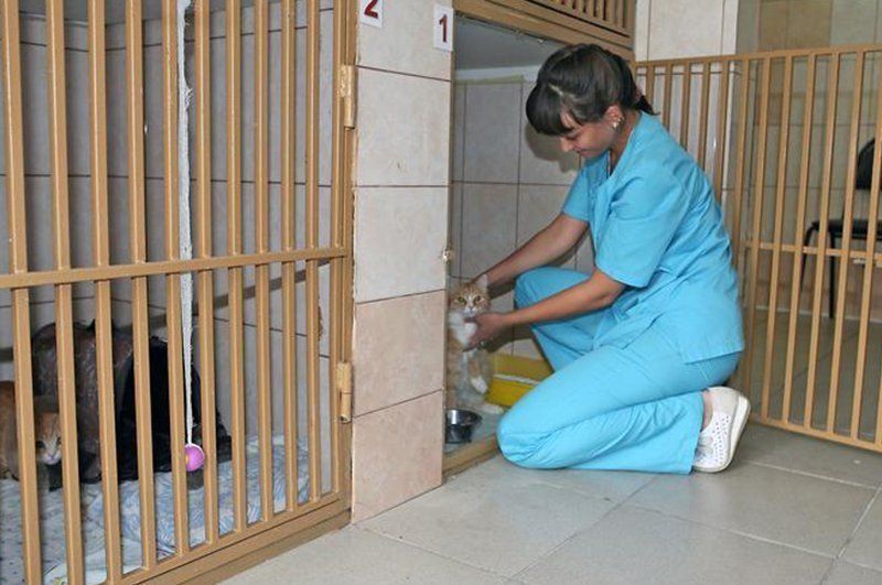 The hotel staff clean the cage every morning without fail, while doing wet cleaning. Food for cats is given twice a day. They feed them with food brought by the owner or homemade food to which the animal is accustomed. This reduces the stress experienced by the animal when moving to a new place of residence. The presence of favorite toys, which the kitty plays all the time, is also encouraged.