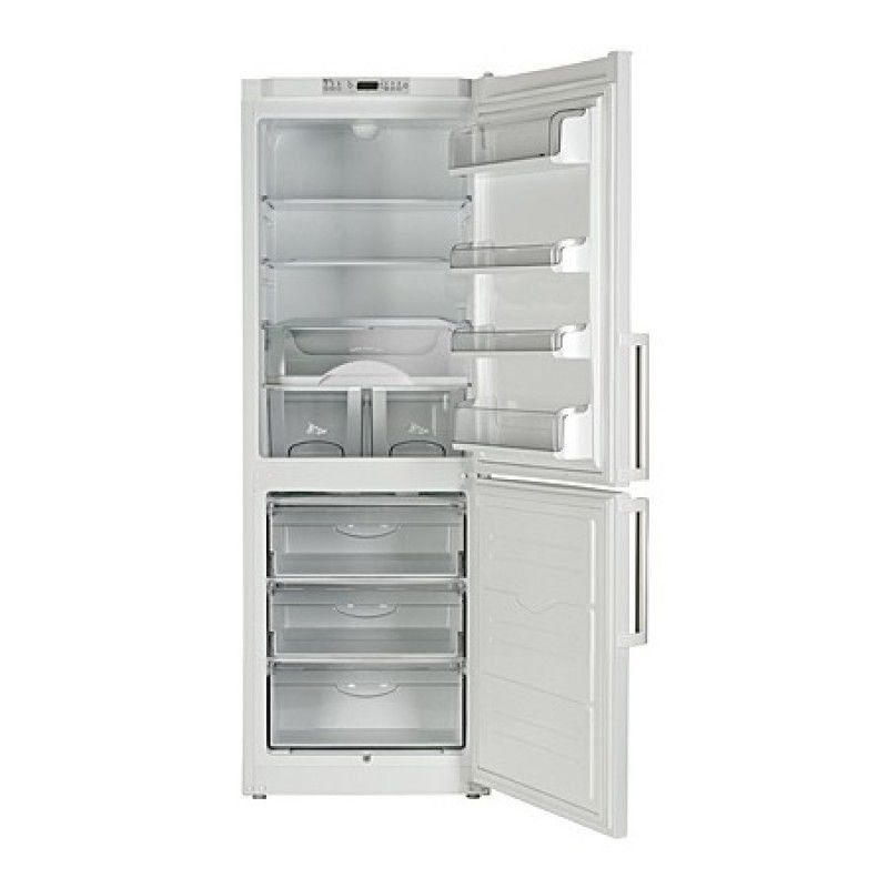 White model 6321 for 2 chambers with a freezer at the bottom. Number of elements: 3 freezers, 4 adjustable glass shelves, 2 deep drawers and 4 door pockets, tray for ten eggs. Doors with two attached handles open either to the right or to the left, depending on their canopy.