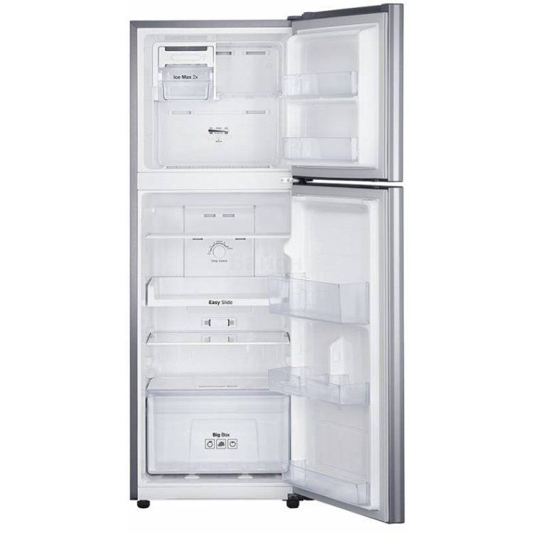 The 3-drawer bottom freezer refrigerator has adjustable frost level and two trays for making ice cubes.