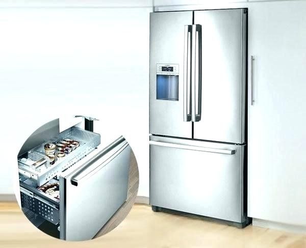 The 3-drawer bottom freezer refrigerator has adjustable frost level and two trays for making ice cubes.