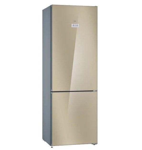 Stylish fridge with bottom freezer equipped with No Frost system. The device spends 274 kWh per year. Two chambers are operated by one compressor. The device is able to keep cold inside for up to 20 hours in the absence of electricity. Freezing capacity is up to 15 kg per day. The refrigerator door has an electronic display.
