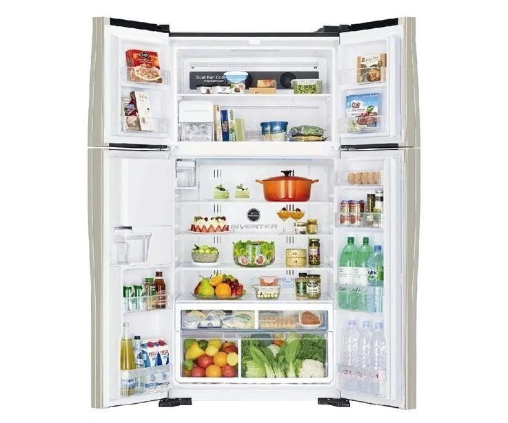 The device of the Japanese company combines the high quality of the materials used and the achievements of modern developments in the production of household appliances. The Hitachi refrigerator is available in brown color. It is fully electronic and has an energy efficiency class of A +. The device is divided into 2 storage chambers, which are located behind 4 doors made of tempered glass.