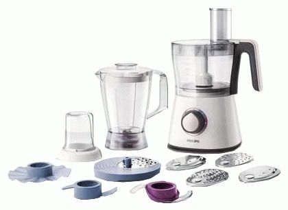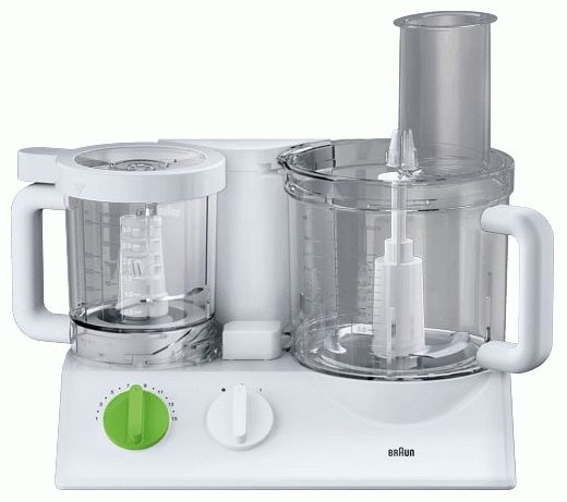 An excellent compact model, equipped with a chopper, grater, crush for puree. Can grind meat into minced meat. Plastic bowl for 2.1L. A great option for a family with small children who are starting to receive complementary foods. Vegetable and meat purees are prepared in this processor very easily and quickly. There is only one speed mode, but it is pulse.