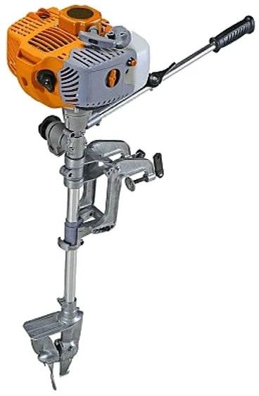 A fairly lightweight two-stroke engine, equipped with an external fuel tank designed for 24 liters. With such equipment, you can walk at shallow depths. There is a possibility of manual lifting of the unit, adjusting its tilt.
