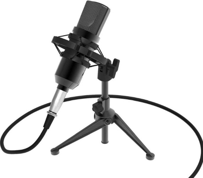 This is a capacitor-type model with a 16 mm diaphragm, which is fixed on a stand. It can be used for interviews, screenings, talking on social networks, recording vocals, chatting in game chats or for streaming. A tripod stand allows you to position your device in the most practical way on your desktop. A spider-type anti-vibration clip is supplied with a tripod and microphone. The box with the device also includes a USB adapter with an additional 3.5 mm TRS jack, through which it is possible to connect headphones.