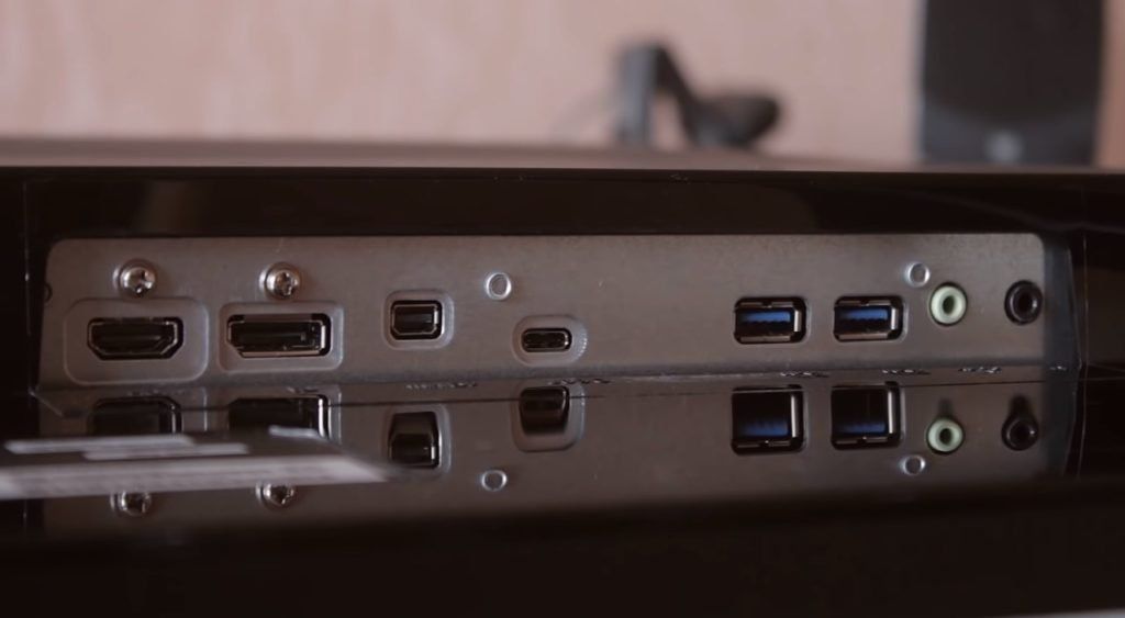 All connectors are located at the bottom of the case. Video inputs are complemented by the increasingly popular Type-C port. The 3.0 Slot Dual Hub is equipped with fast charging function. Built-in 7W speakers and two 3.5mm jacks make up the audio portion of the monitor.