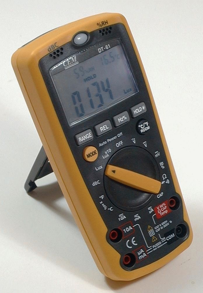 If you are dreaming about your mini-laboratory of electronic character, then this device will fulfill your dream. The CEM DT-61 multimeter has advanced capabilities, which allows it, in addition to basic characteristics, to measure temperature by a non-contact method. You can also easily find out what level of humidity in the room or set the levels of illumination and noise. These characteristics make it possible to use the device for studying premises, and establish how the readings correspond to labor protection standards.