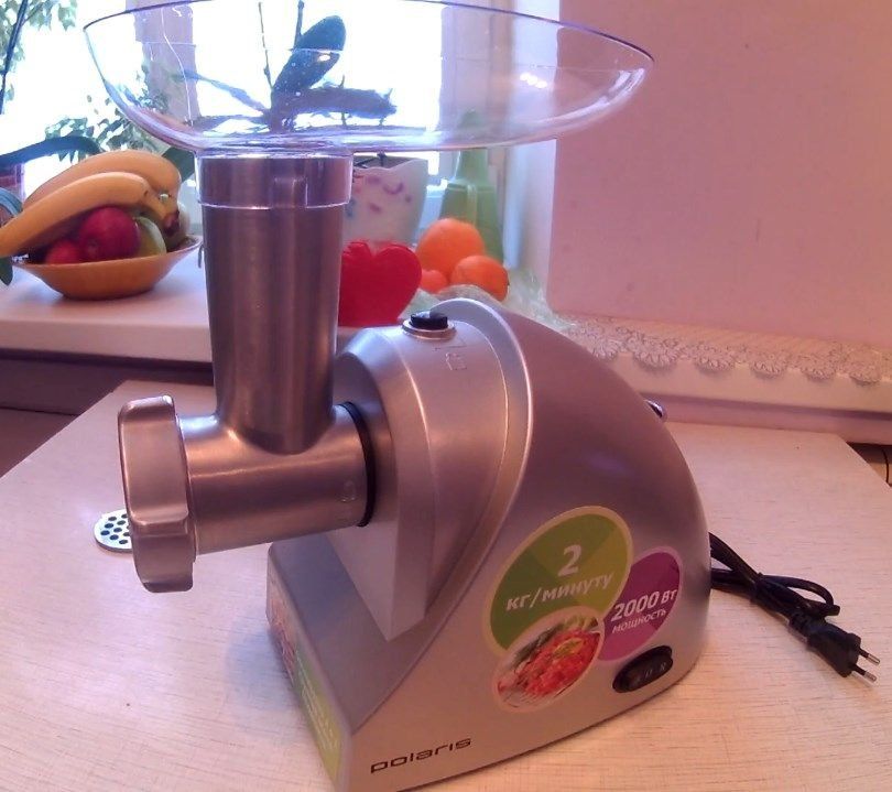 For such a meat grinder, it is necessary to clean the meat from cartilage and veins, and also to avoid loading products with hard fiber. You can use the device continuously for no more than ten minutes. The reverse function inherent in all Polaris machines is useful when scrolling low quality meat. It forces the auger to rotate in the opposite direction and push out problem pieces.