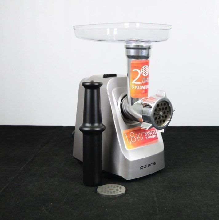 The complete set of devices depends on the functions performed and may differ in the number of grilles and additional attachments. The set of any Polaris electric meat grinder of this segment necessarily includes: