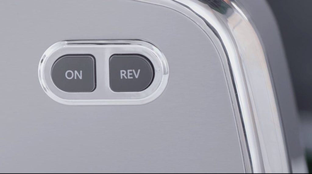 The meat grinder with a two-year warranty has already won customer acceptance. This model is equipped with a long-life motor and is protected against voltage surges and overloads. The body of the device is made of durable silver plastic, and all working elements are made of metal. The power and reverse buttons are located on the side edge and are highlighted in blue. The fixing button remained near the block attachment point. Overload protection is brought out in the form of a button on the bottom of the grinder.