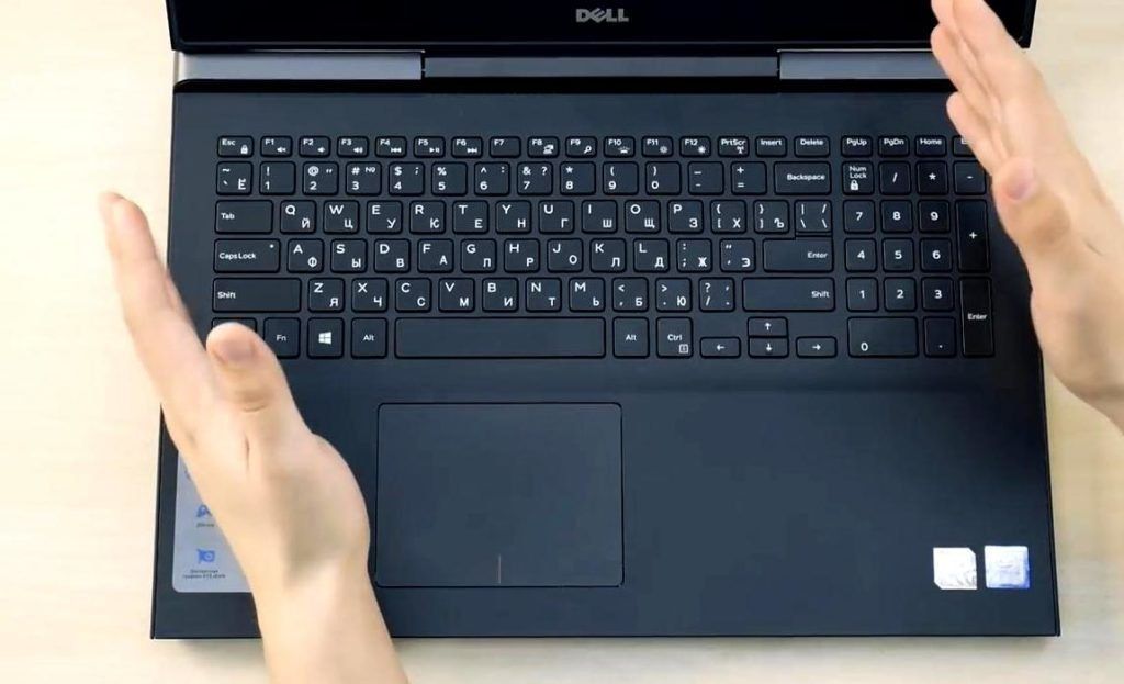 Power button at the top right, the keyboard itself without a numeric block. The bezel-less display and the general keyboard frame are fixed very well, they don't bend anywhere. The key travel is deep enough, the keyboard is good for typing. For games, this keyboard is not the most convenient, but still this is not a gaming laptop.