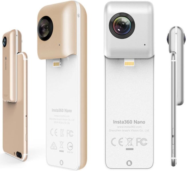 It's a reliable, budget-friendly option with a 210-degree viewing angle and Full HD 1080p shooting. The Insta360 Nano is not a traditional camera. The fact is that it is a module for a smartphone and an excellent solution for those who cannot afford professional or semi-professional devices. This model is designed for Apple iPhone 6 version and up. There is also an analog for Android - Insta360 Air. Outwardly, it is significantly different, but conceptually it is one and the same device.