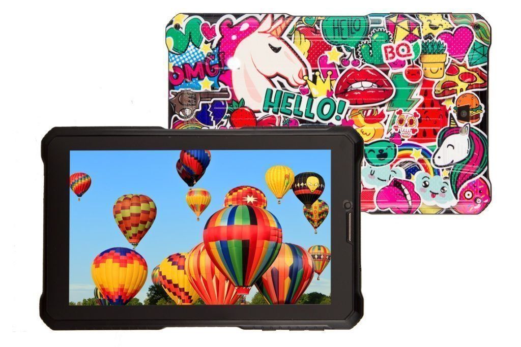 Externally, this model is a twin brother of the previous one - BQ 1082G, 12 different versions of the back cover are also available here. The model differs in the screen size, which here is only 7 inches. The technical specifications are exactly the same as the 1082G - processor, RAM and internal memory, the ability to install a 32 GB SD card, cameras and much more. This tablet has a weaker 4100 mAh battery due to its smaller screen size. The device weighs 300 grams, and the case is also shock-resistant.