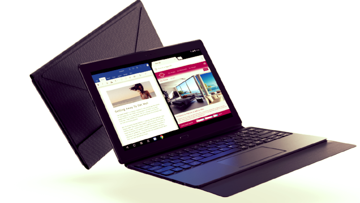 A very innovative and productive model, tailored for different functions. The tablet looks like a small laptop (display with keyboard) when unfolded and is positioned as a "laptop-transformer".