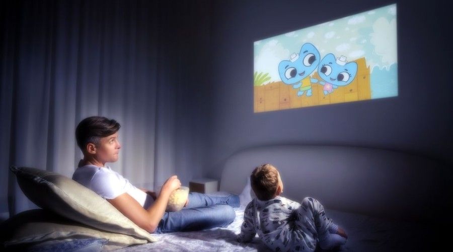 The principle of the projector is quite simple. It copies an image from the screen of a computer device and transfers it in large size to any flat surface.